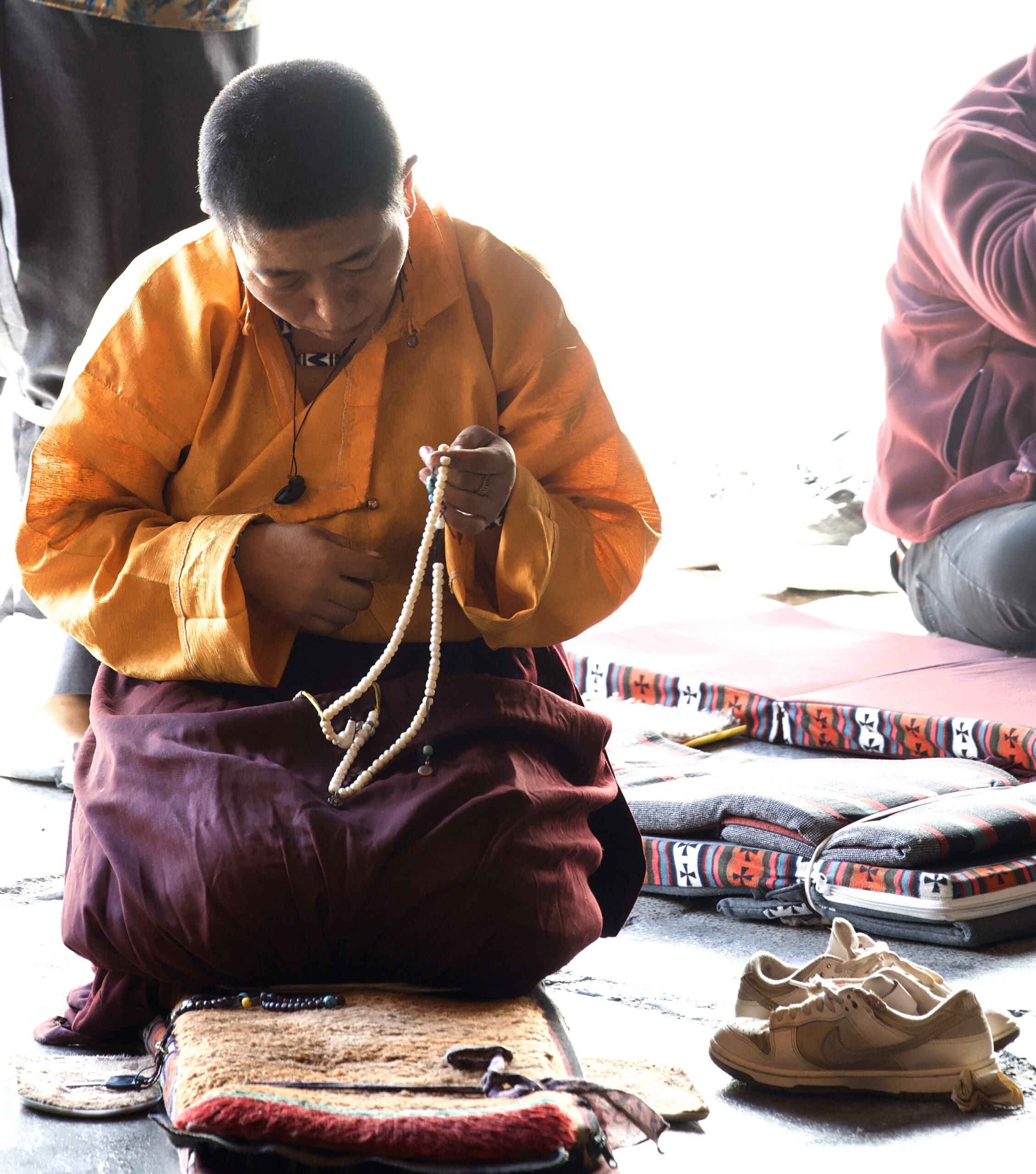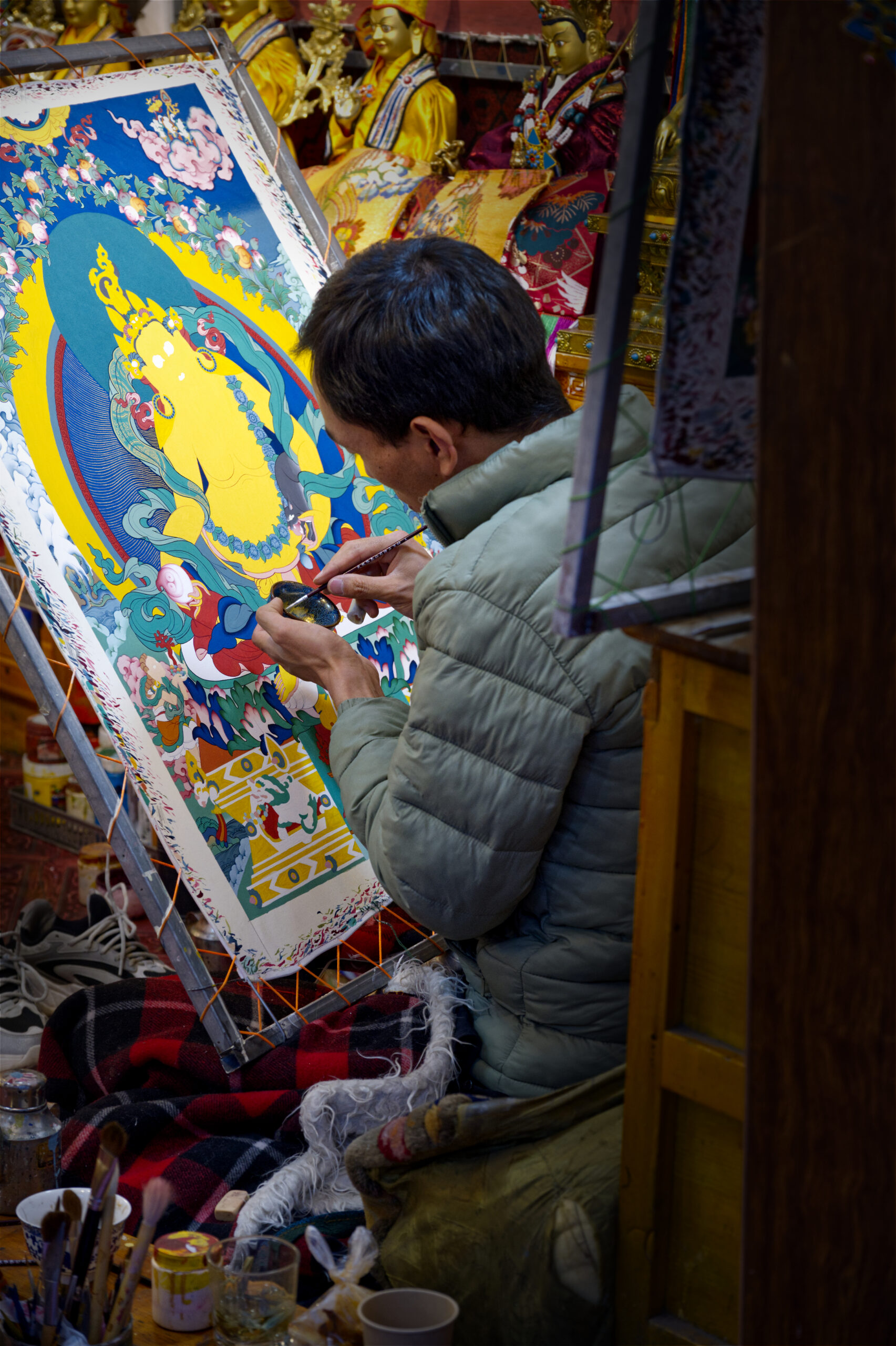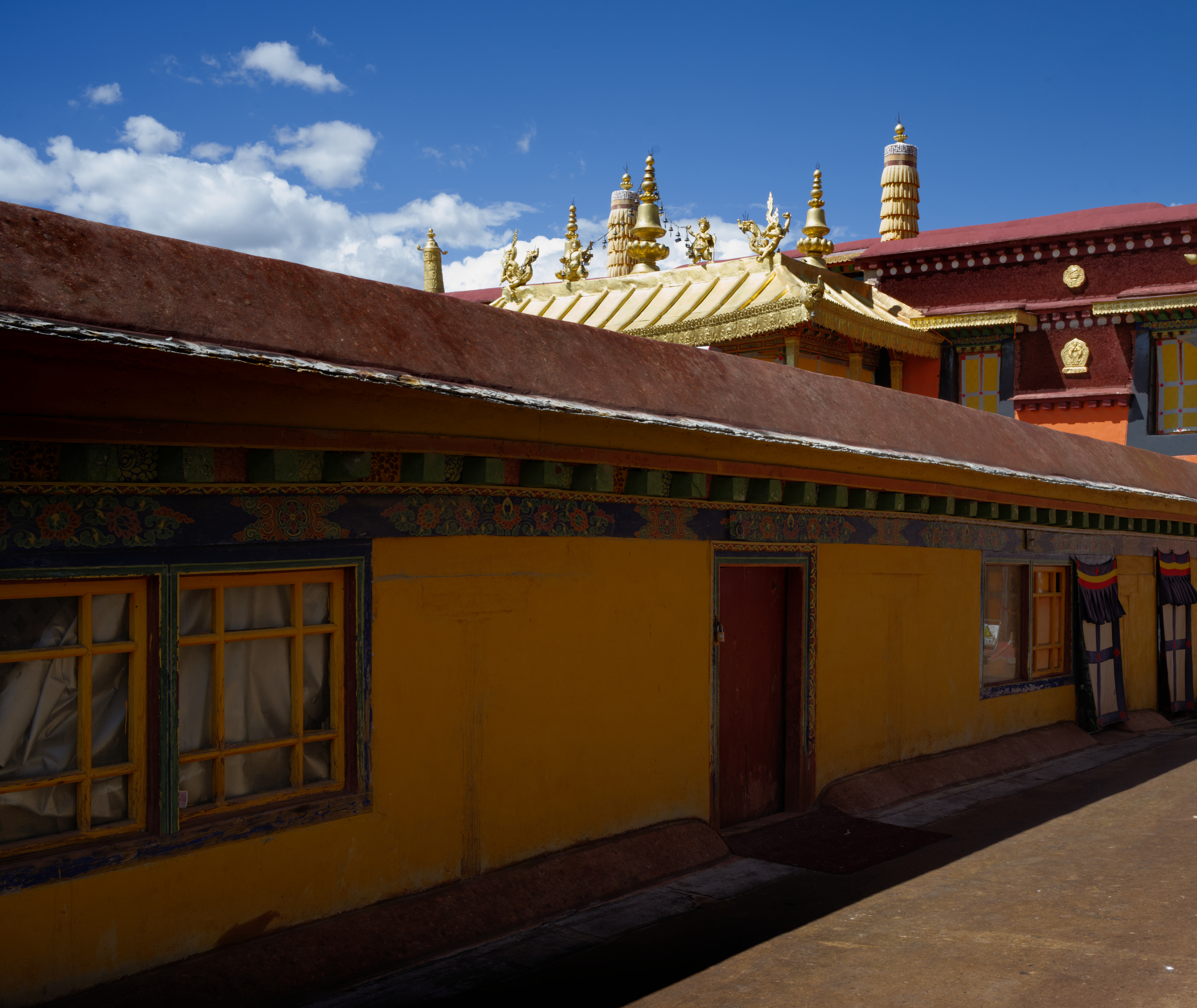 Men and women often choose to embark on a monastic path from an early age and relocate to places of high spiritual learning. For this, temples and monasteries are ubiquitous in the city. These complexes are brightly-colored and intricately-decorated. Hardly any light shines through from the world outside the walls. Dim lightbulbs and glowing candle flames are responsible for brightening up the spaces. Candles are lit non-stop, and devotees flood the halls to add butter to the burners, ensuring that the light never goes out.